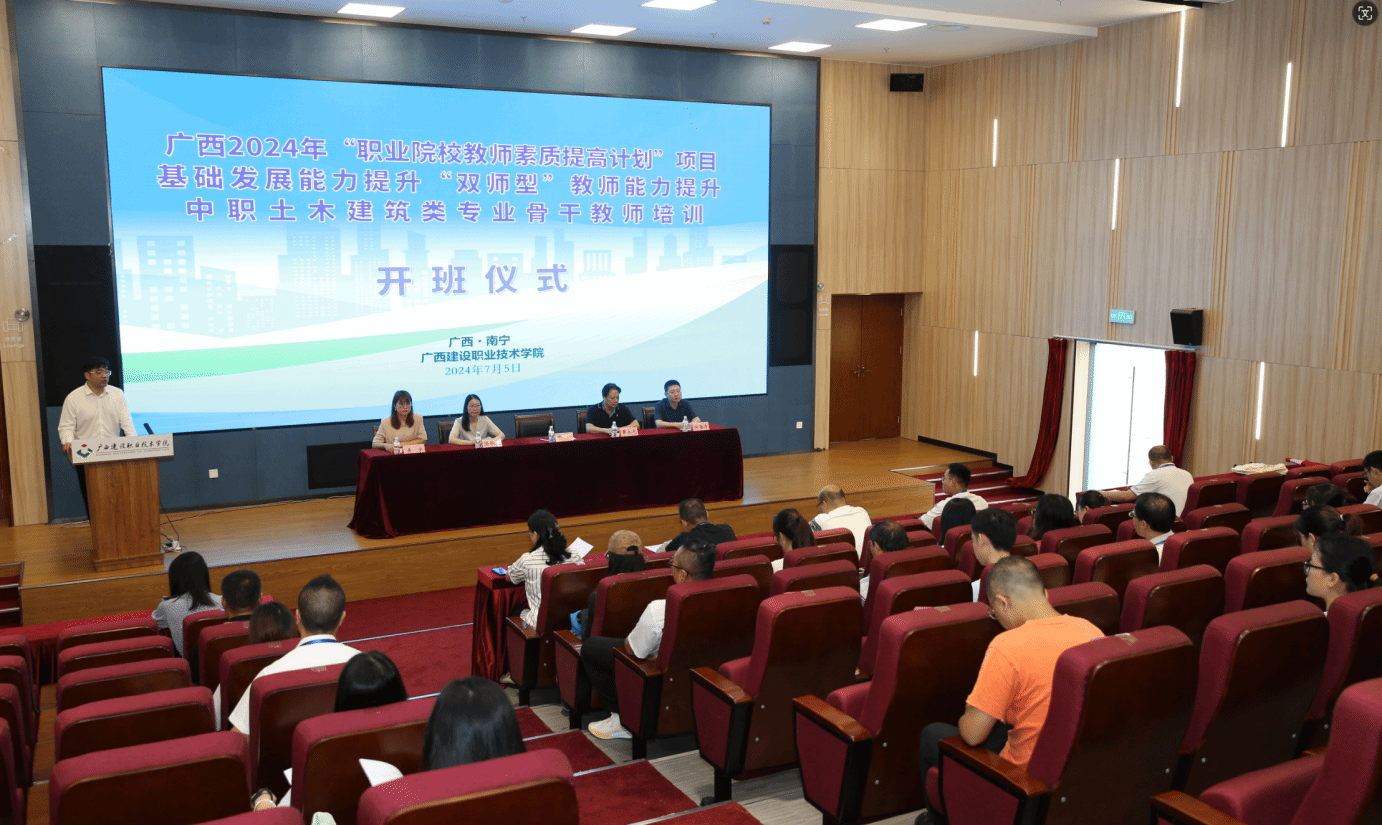廣西建院7月8日訊(設(shè)備與環(huán)境學(xué)院 孫翔)7月5日上午,廣西2024年“職業(yè)院校教師素質(zhì)提高計劃”基礎(chǔ)發(fā)展能力提升項目“雙師型”教師能力提升—中職土木建筑類專業(yè)骨干教師培訓(xùn)班開班儀式在我校圖書館1樓學(xué)術(shù)報告廳舉行。