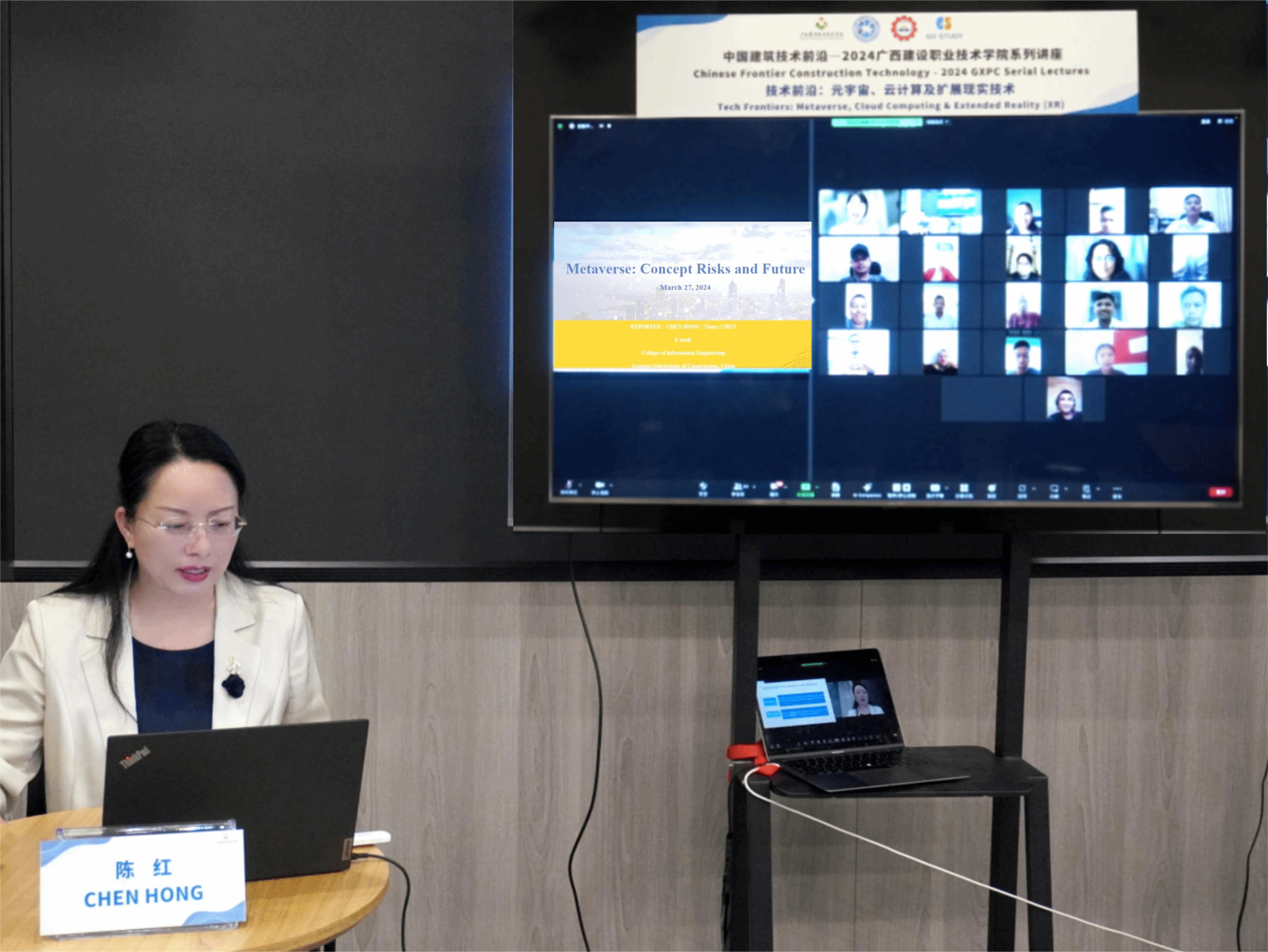 廣西建院4月1日訊(信息工程學院 傅俊韜)為積極響應(yīng)國家推進高質(zhì)量共建“一帶一路”倡議,貫徹落實廣西重點實施面向東盟的教育對外開放要求,以“中國信息技術(shù)前沿”為主題的廣西建設(shè)職業(yè)技術(shù)學院系列講座于3月27日—29日如期上線。國際交流中心副主任陳曉、技術(shù)教育與培訓部門負責人奉馬拉先生(Mr.Pho Mara)、信息工程學院副院長覃一海以及三位培訓教師參加開班儀式。