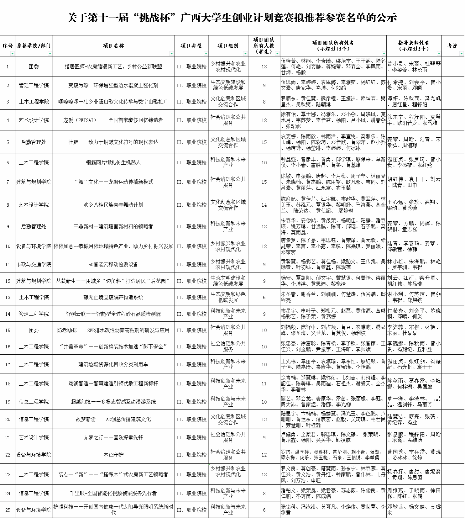 根據各項目類別的評審要點和相關要求,經評委對項目申報書、創業計劃書和PPT等資料的嚴格審查,最終遴選出25個參賽項目推薦參加區賽。下一步,學校將對本次遴選出的項目進行有針對性地培育和輔導,進一步提高項目水平,引導和激勵我校學生通過此次競賽加強社會實踐、社會觀察能力,增強對國情社情民情的了解,激發創新精神,培育創業意識,提升創業能力。