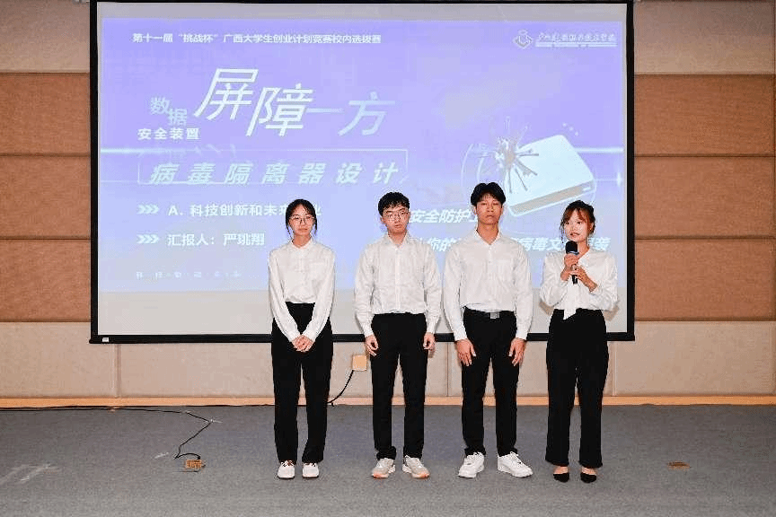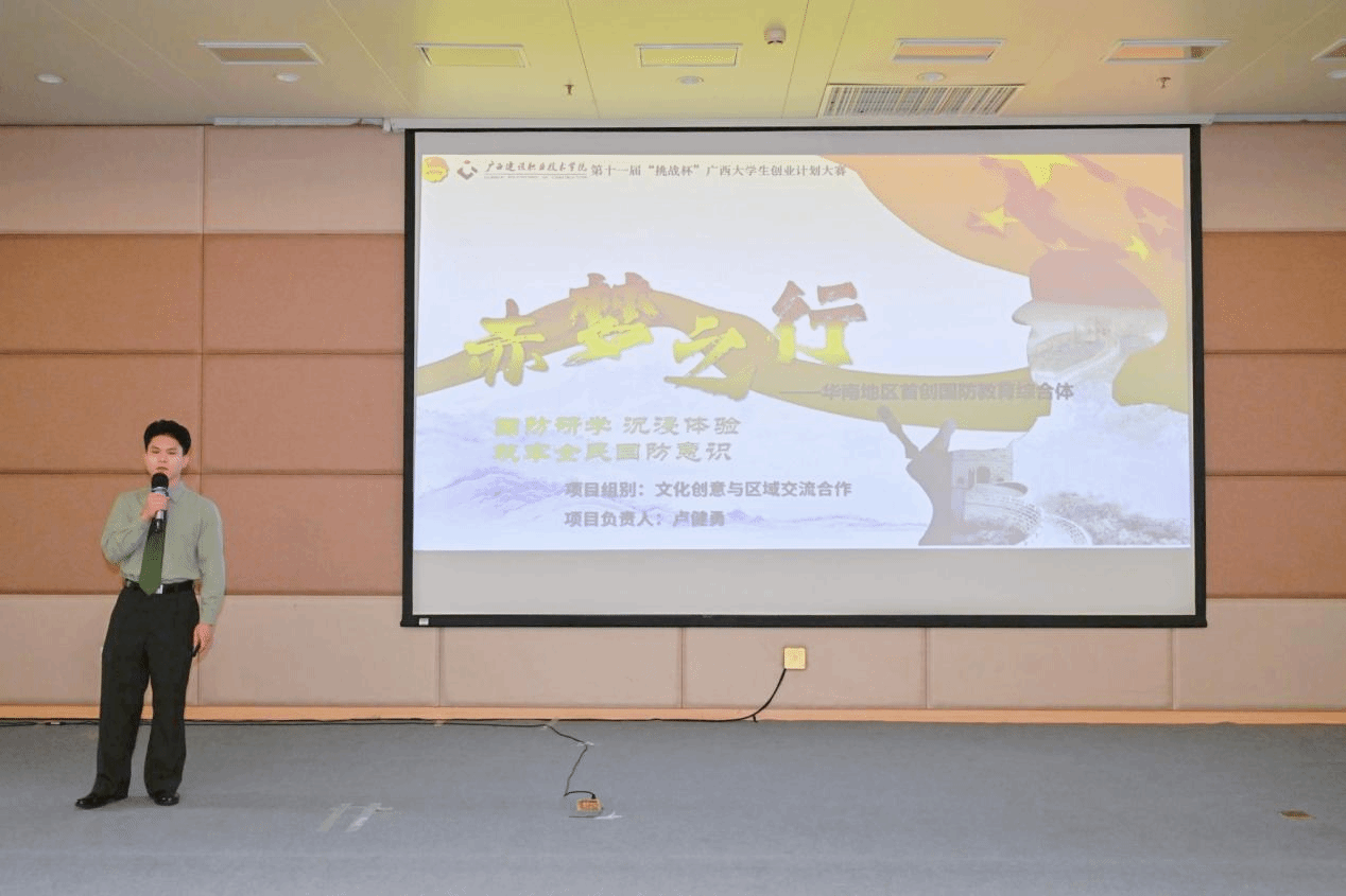 廣西建院4月28日訊(文/團委 黎丹 圖/青年新媒體中心 李彤)4月27日,我校在四教一樓報告廳舉行第十一屆“挑戰杯”廣西大學生創業計劃競賽校內選拔賽決賽。經過各二級學院初賽推薦、校級復賽評審,共有35個項目脫穎而出,進入決賽路演環節。
