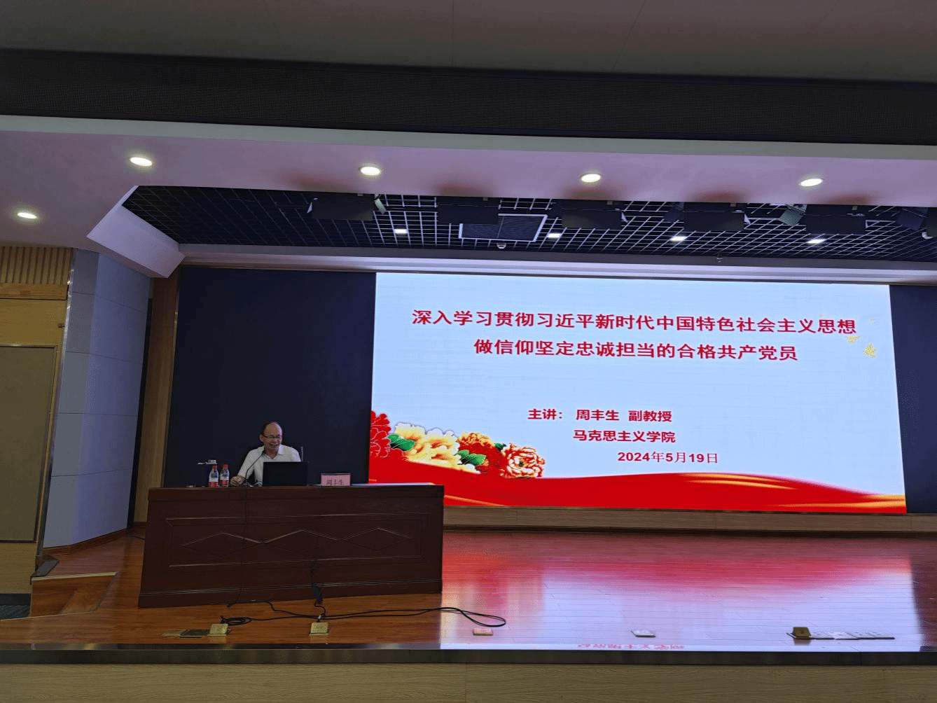 學(xué)校馬克思主義學(xué)院副教授周豐生以《深入學(xué)習(xí)貫徹習(xí)近平新時(shí)代中國(guó)特色社會(huì)主義思想 做信仰堅(jiān)定忠誠(chéng)擔(dān)當(dāng)?shù)暮细窆伯a(chǎn)黨員》