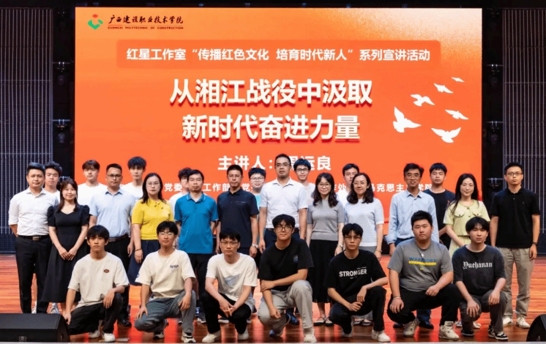 廣西建院5月26日訊(文/黨委學生工作部 謝安妮 圖/黨委學生工作部 程舒陽 記者團 甘盧燁宇 李承宏)為充分用好紅色資源,用紅色精神培根鑄魂,推動我校黨史學習教育走深走實,近日,“傳播紅色文化,培育時代新人”系列宣講活動在學校禮堂順利舉辦。全州紅軍長征湘江戰役紀念館館長周運良以“從湘江戰役中汲取新時代奮進力量”為題作了精彩宣講。學校師生代表共700余人現場聆聽。