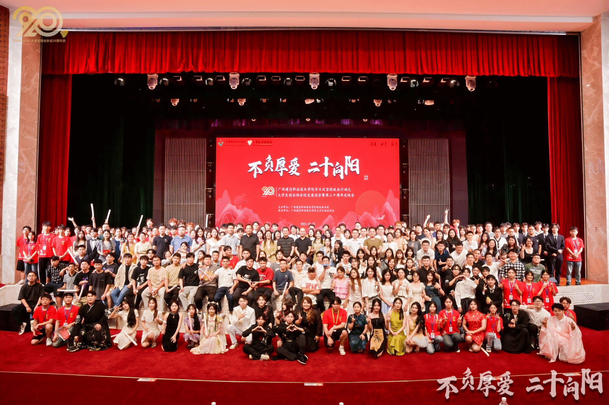 晚上,“不負厚愛 二十向陽”大學生創業協會20周年慶晚會在學校禮堂舉辦。整場晚會節目形式多樣,將年輕一代的活力與激情展現得淋漓盡致。在歡快的氛圍中,大家共同回顧了協會精彩的發展歷程,展望了充滿希望的未來。這場晚會不僅是對過去的致敬,更是對未來的期許和憧憬。