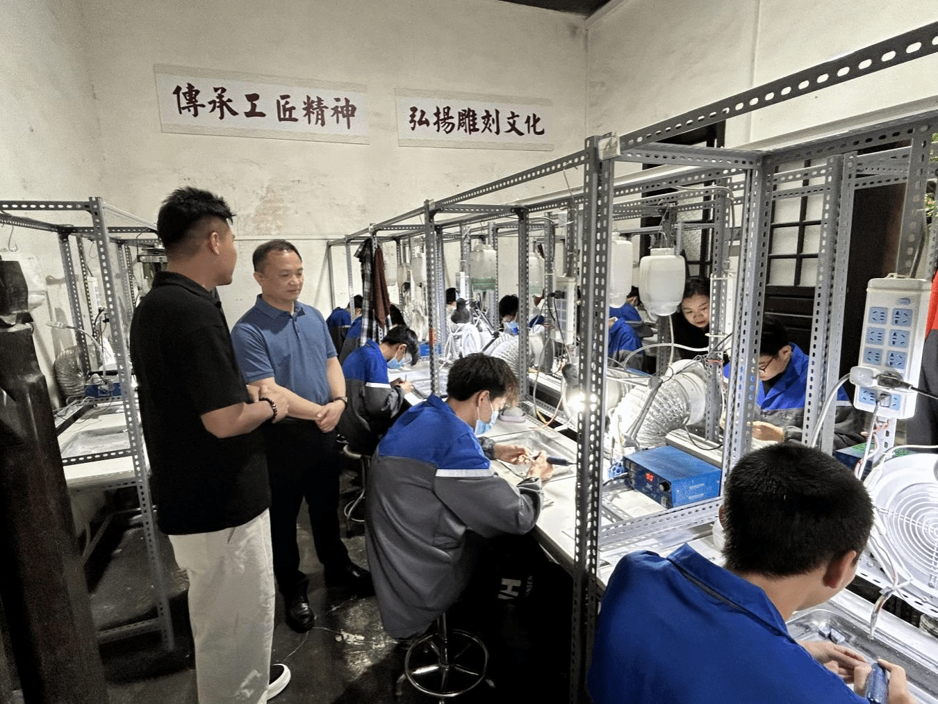 觀摩學(xué)生雕刻實訓(xùn)課堂教學(xué)