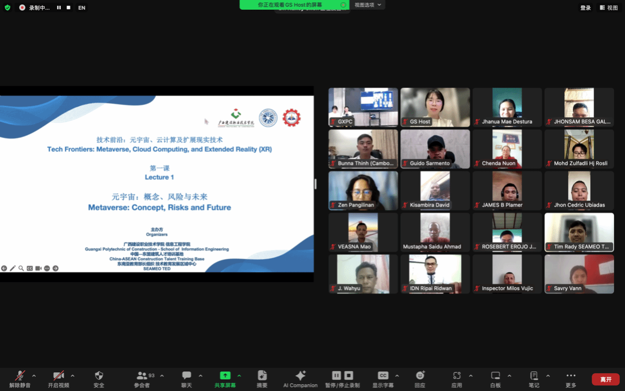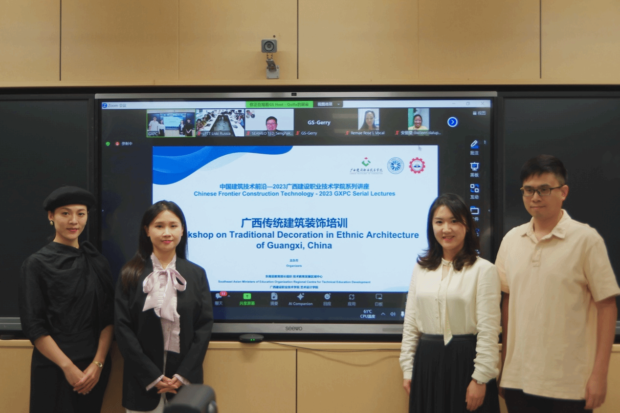 學(xué)校與東南亞教育部長(zhǎng)組織技術(shù)教育發(fā)展區(qū)域中心聯(lián)合舉辦了面向東盟的2個(gè)專題共6場(chǎng)線上培訓(xùn)。其中,學(xué)校藝術(shù)設(shè)計(jì)學(xué)院的3位教師以“廣西侗族傳統(tǒng)建筑裝飾”為主題,向東盟師生做了《廣西傳統(tǒng)建筑解析與傳承》《廣西地域文化在現(xiàn)代室內(nèi)裝飾設(shè)計(jì)中的應(yīng)用》《廣西傳統(tǒng)裝飾與現(xiàn)代室內(nèi)裝飾工藝的結(jié)合》等三場(chǎng)分享;學(xué)校信息工程學(xué)院3名青年教師聚焦科技前沿,分別以《元宇宙:概念、風(fēng)險(xiǎn)與未來(lái)》《云計(jì)算入門:服務(wù)類型、關(guān)鍵技術(shù)、部署模式》《擴(kuò)展現(xiàn)實(shí)(XR)技術(shù)在建筑與室內(nèi)相關(guān)領(lǐng)域中的應(yīng)用》為題做專題培訓(xùn)。老師在授課期間,全程使用英語(yǔ)向海外學(xué)生、學(xué)者與行業(yè)從業(yè)人員進(jìn)行授課和答疑,吸引了約660人次參與。這兩個(gè)系列課程充分展示了學(xué)校教育貼近行業(yè)發(fā)展前沿和立足廣西優(yōu)勢(shì)特色,探索創(chuàng)新教學(xué)模式,持續(xù)深化國(guó)際影響力提升,面向東盟打造“建院職教”品牌,提升中國(guó)職教的魅力。