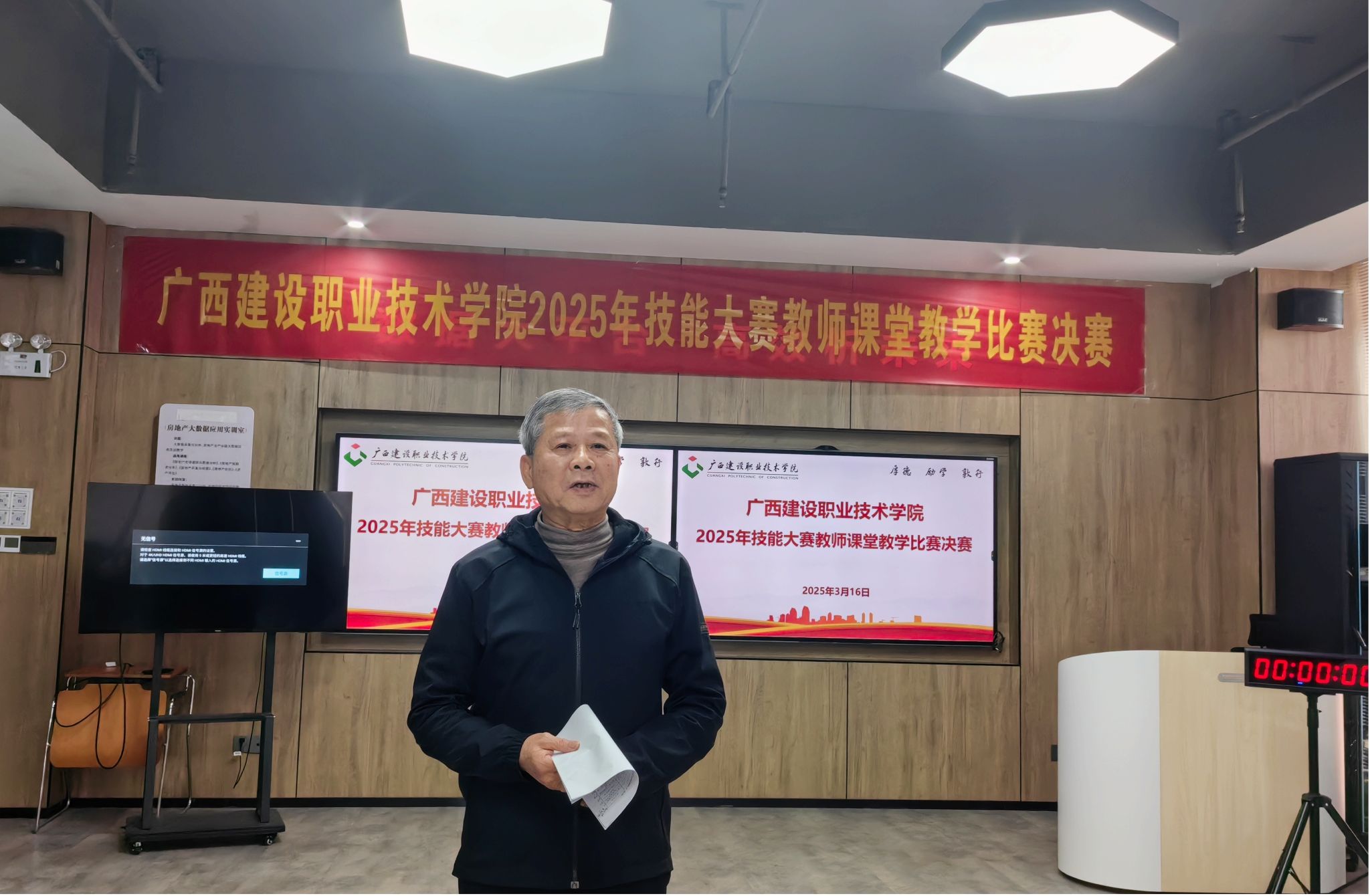 廣西建院3月17日訊(文/教師發展中心 張望 圖/融媒體中心 甘盧燁宇、吳海田)3月16日,我校2025年技能大賽教師課堂教學比賽決賽在實訓南樓502教室舉行。比賽邀請廣西高教學會職業院校信息化教學指導委員會顧問胡華進教授等5位校外專家擔任評委。學校副校長梁偉親臨賽場并全程觀看了比賽。比賽由教師發展中心主任陽艷美主持。