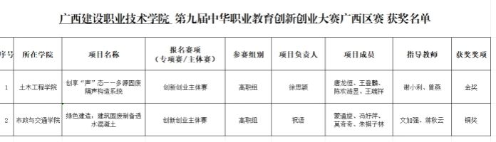 近日,第九屆中華職業教育創新創業大賽廣西區賽獲獎名單公布,我校參賽團隊憑借扎實的項目基礎和出色的現場發揮,從激烈競爭中脫穎而出,斬獲1項金獎、1項銅獎的優異成績。指導教師謝小利榮獲“優秀指導老師”稱號。