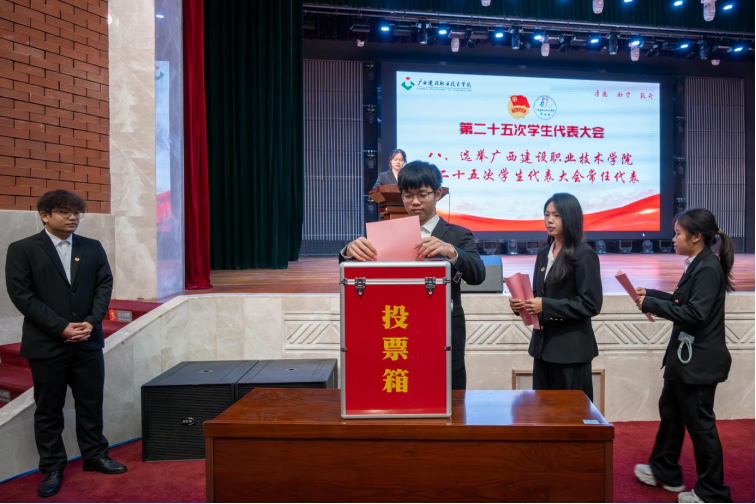 會議期間,全體學生代表以高度負責的態度,認真審議并表決通過了學生會工作報告、學生代表大會提案工作委員會關于提案工作的報告等重要文件。同時,嚴格按照選舉程序,依法依規選舉產生3名校學生會主席團成員與14名常任代表。新當選的學生會主席團成員黃沛紅代表第二十五屆學生會發起倡議。她表示,新一屆學生會成員將以堅定的理想信念、過硬的專業本領、強烈的時代擔當,扎根同學、服務同學,助力學校發展,在技能報國、強校興邦的征程中奮力書寫青春華章。
