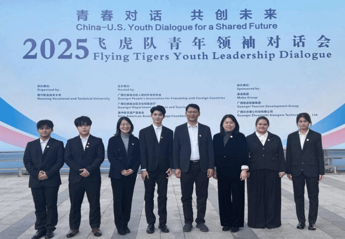 12月26日,以“青春對話 共創未來”為主題的2025飛虎隊青年領袖對話會在南寧職業技術大學舉行。本次活動由自治區人民對外友好協會、自治區文化和旅游廳與美中航空遺產基金會聯合主辦。自治區黨委書記、自治區人大常委會主任陳剛,美中航空遺產基金會主席杰弗里·格林,中國人民對外友好協會美大部副主任巴翠翠出席活動并致辭。我校校長梁業勝率師生代表團參加本次對話會。