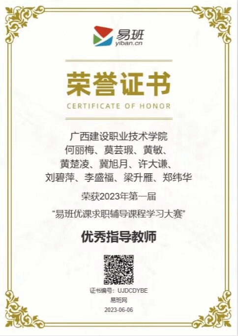 2023年第一屆“易班優課求職輔導課程學習大賽”優秀指導教師獲獎證書