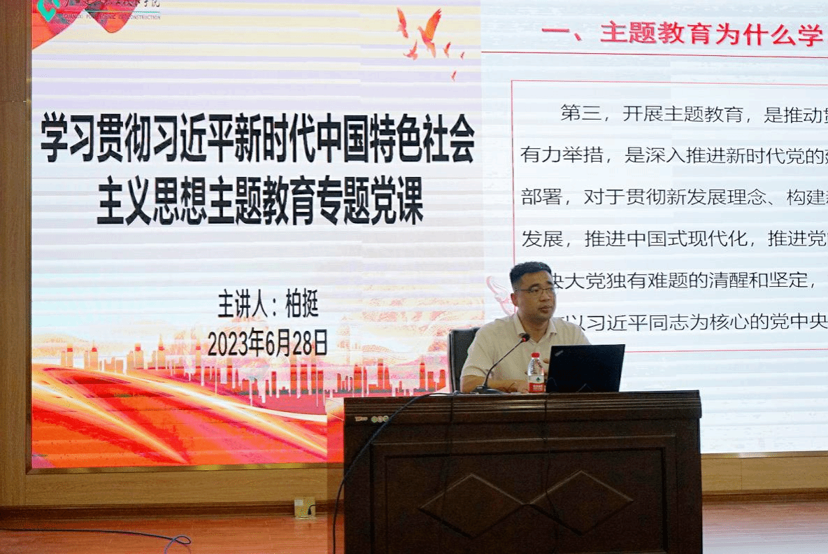 廣西建院6月29日訊(設備與環境學院 文/李悉嫻 圖/徐曉雪)6月28日上午,學校副校長柏挺以《堅持以學促干推動主題教育走深走實,推進我校畢業生高質量充分就業》為題,在學校四教二樓報告廳為設備與環境學院黨總支、繼續教育學院、招生就業處黨員上黨課。