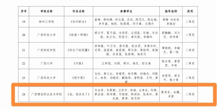 廣西建院8月1日訊(黨委學生工作部 余骦)近日,自治區教育廳公布全區高校大學生心理微電影比賽獲獎名單,我校報送的2部作品分獲一等獎和二等獎。