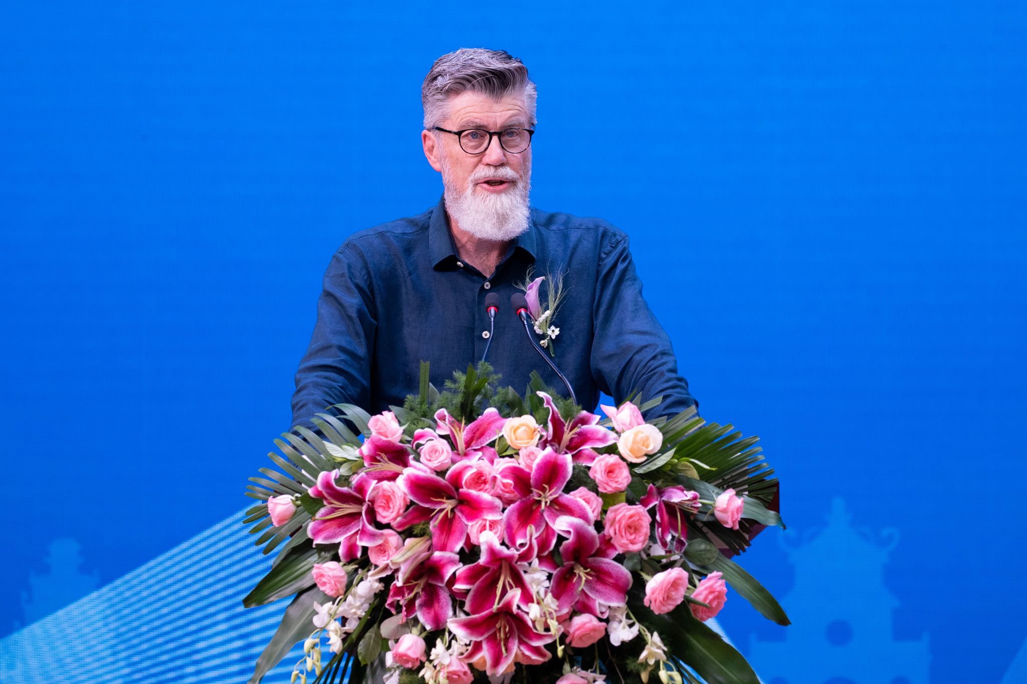 新西蘭國際教育交流協會會長默里·伯頓、柬埔寨國家技術培訓學院校長約克·索伊分別致辭。