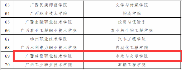 廣西建院10月5日訊(黨委宣傳部 韋植巍)近日,自治區教育廳印發《關于公布第二批全區高校“三全育人”綜合改革示范院系名單的通知》,我校管理工程學院、市政與交通學院被確定為第二批全區高校“三全育人”綜合改革示范院系(B類)。這是我校全面推進“三全育人”綜合改革,不斷提升思想政治工作成效取得的又一重要成果。