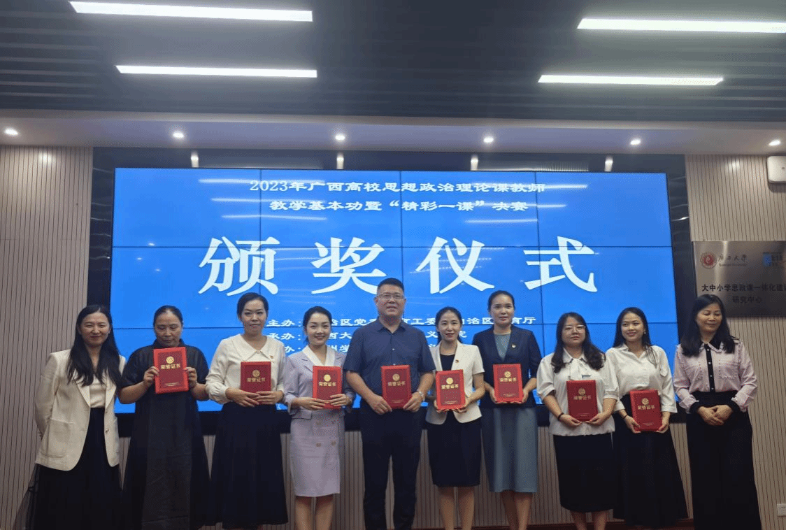 廣西建院10月15日訊(馬克思主義學院文/曹桃圖/劉荔源)10月14日,廣西高校思想政治理論課教師教學基本功暨“精彩一課”決賽在廣西大學舉行。我校馬克思主義學院蘇亞莉老師榮獲高職高專組特等獎,萬秀熠老師榮獲高職高專組一等獎。
