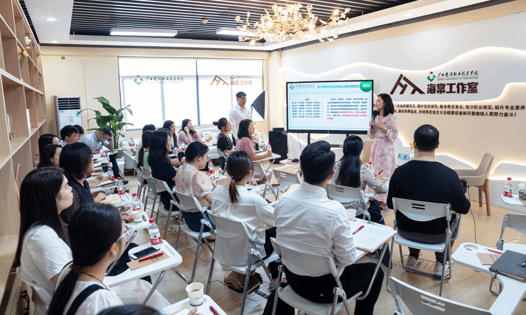 一直以來,學校高度重視輔導員素質能力提升工作,學校領導親自部署指導,形成了由學工部牽頭組織、二級學院支持配合、海棠工作室具體實施的培訓機制。以賽代練,每年對標區賽賽制舉辦覆蓋全校專職輔導員的素質能力比賽;以賽促學,定期舉辦輔導員素質能力訓練營,覆蓋全校專職輔導員進行業務“大練兵”;以賽促建,健全輔導員素質能力大賽備賽機制,組建了立足當年、統籌長遠的進階成長團隊。