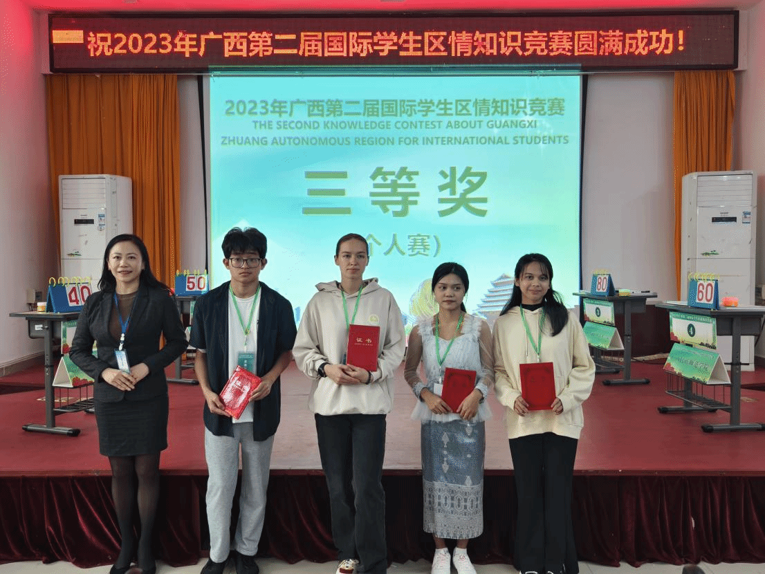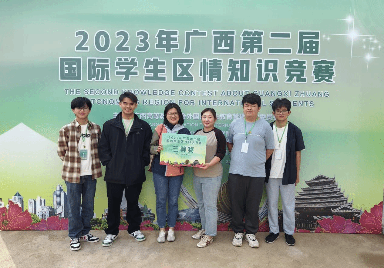 廣西建院12月16日訊(文\教務(wù)處 李瑩 圖\國際交流中心 謝澤蕓)12月13—15日,2023年廣西第二屆國際學(xué)生區(qū)情知識(shí)競賽在柳州城市職業(yè)學(xué)院舉行,來自全區(qū)17所本科、高職院校的50名國際學(xué)生參加了此次比賽。我校獲團(tuán)體賽項(xiàng)三等獎(jiǎng),藝術(shù)設(shè)計(jì)學(xué)院陳俊睫同學(xué)獲得個(gè)人賽三等獎(jiǎng)、信息工程學(xué)院黃賑羱同學(xué)獲優(yōu)秀獎(jiǎng)。
