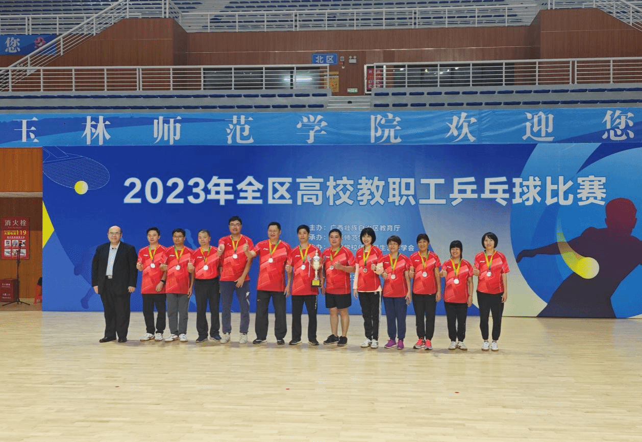 廣西建院12月12日訊(工會 陸康)12月5日—8日,由廣西壯族自治區教育廳主辦的2023年全區高校教職工乒乓球比賽在玉林師范學院舉行,來自全區38所高校的代表隊參加角逐。我校代表隊派出鐘智明、何炎、黃劍華、莫壯國、俸洪斌、朱金華、吳青云、莫克、彭丹梅、黃冬英、陶敏華、韋懷波12名隊員參加比賽,獲得第二名的好成績。