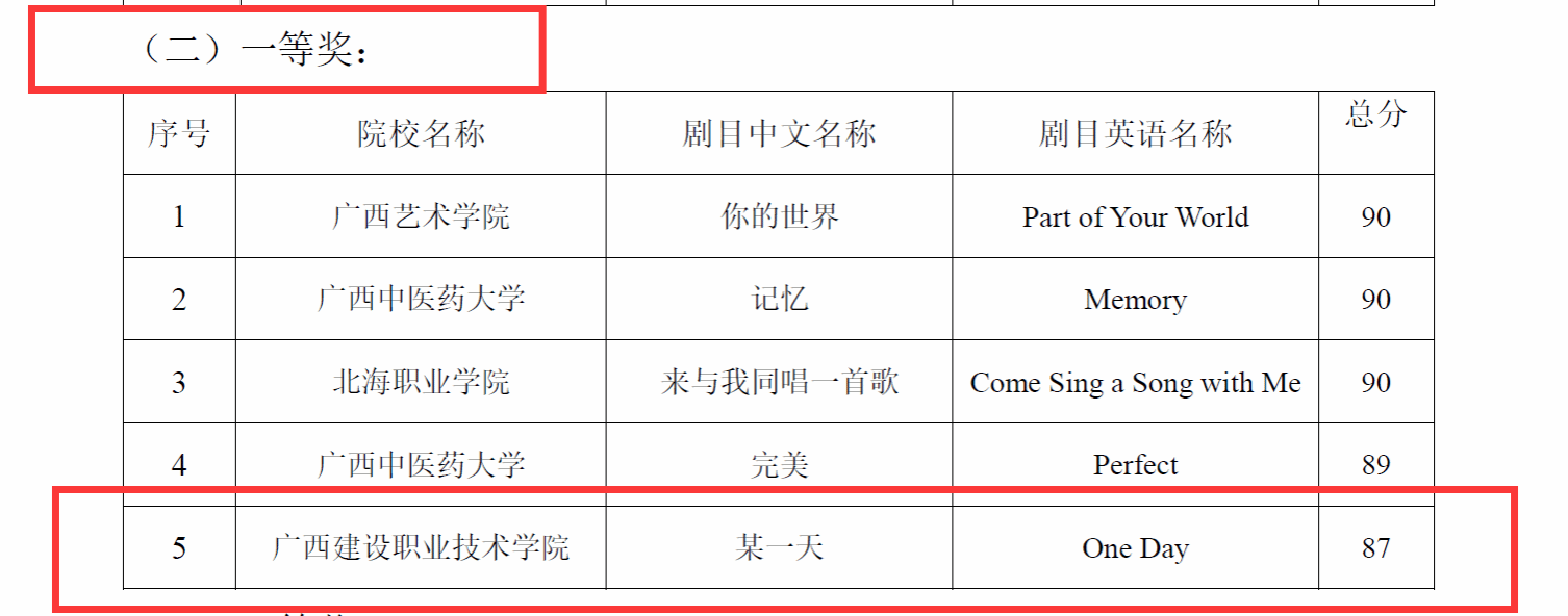 歌曲演唱劇目獲一等獎截圖