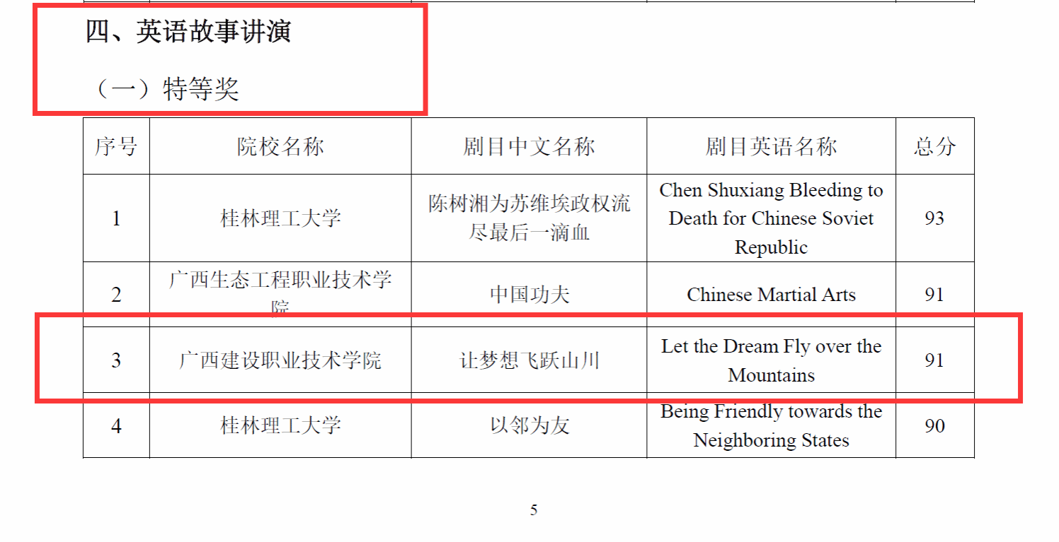 廣西建院12月16日訊(人文教育學院 盧森源)近日,由廣西高校外語教育研究專業委員會協同廣西翻譯協會主辦的第十八屆廣西高校大學生英語戲劇節圓滿落幕。在我校英語教研團隊的帶領和人文教育學院盧森源老師的精心指導下,建筑與規劃學院學子黃川越喜獲故事講演劇目特等獎,陳志杰、毛嘉慧斬獲故事講演劇目一等獎,江雨霏榮獲歌曲演唱比賽一等獎。此番成績刷新了歷年來我校參與該項賽事的最佳記錄。