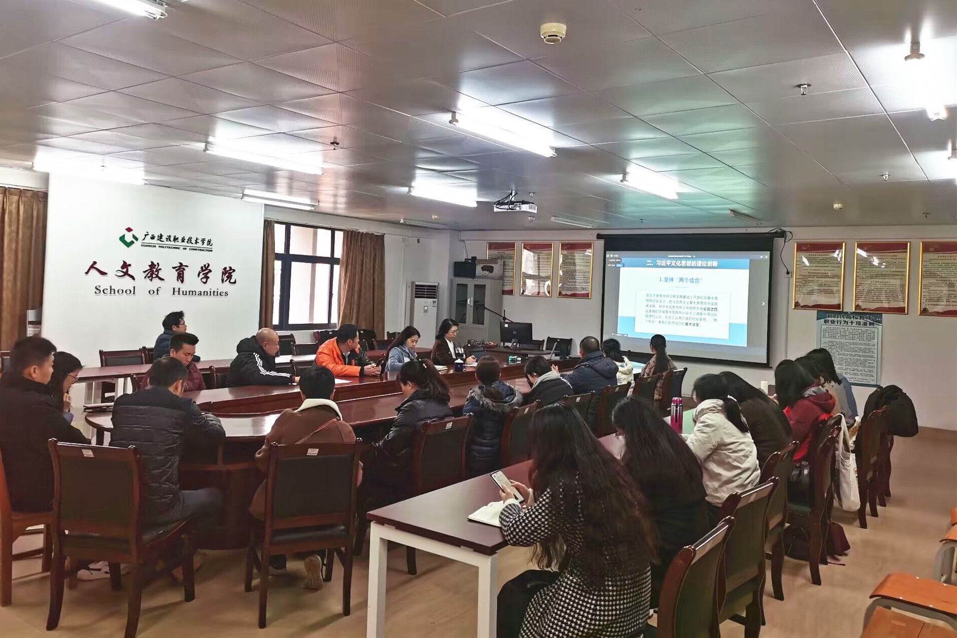 廣西建院12月20日訊(文/黨委宣傳部 陳熙 圖/記者團 甘盧燁宇)12月19日,區直機關宣講團學習貫徹習近平文化思想宣講報告會(自治區住房城鄉建設廳專場)舉行。自治區黨委講師團特聘教授(專家)、自治區決策咨詢委員會咨詢專家曹光哲作主題宣講報告。自治區住房城鄉建設廳黨組成員、副廳長、機關黨委書記葉云主持會議。我校在四教一樓報告廳、各二級學院設分會場,行政部門全體人員、各二級學院行政人員以及無教學任務的教師參加學習。