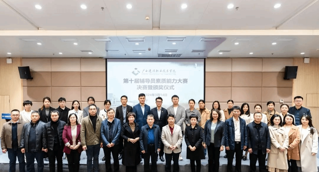 廣西建院3月16日訊(黨委學生工作部 文/馬凱 圖/程舒陽 馬凱)3月14日,我校第十屆輔導員素質能力大賽決賽暨頒獎儀式在四號教學樓一樓報告廳舉行。學校副校長伍耿清出席比賽現場并講話,各二級學院學管領導,學工部、團委全體老師,全體專職輔導員及班主任代表到場觀摩。