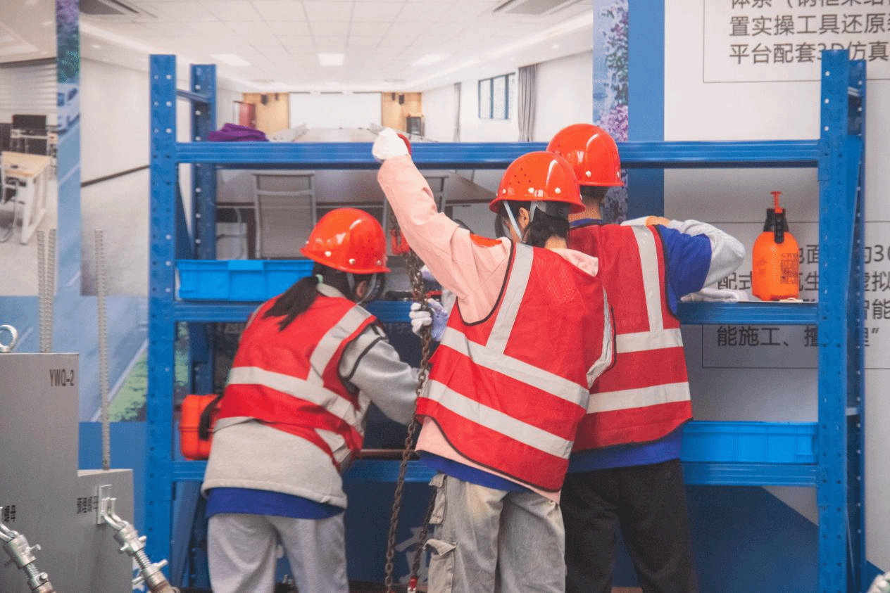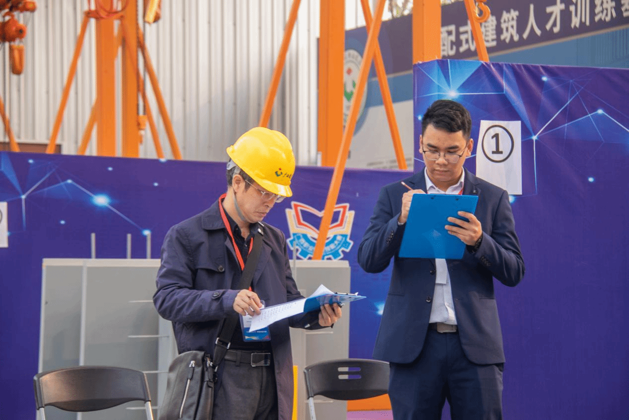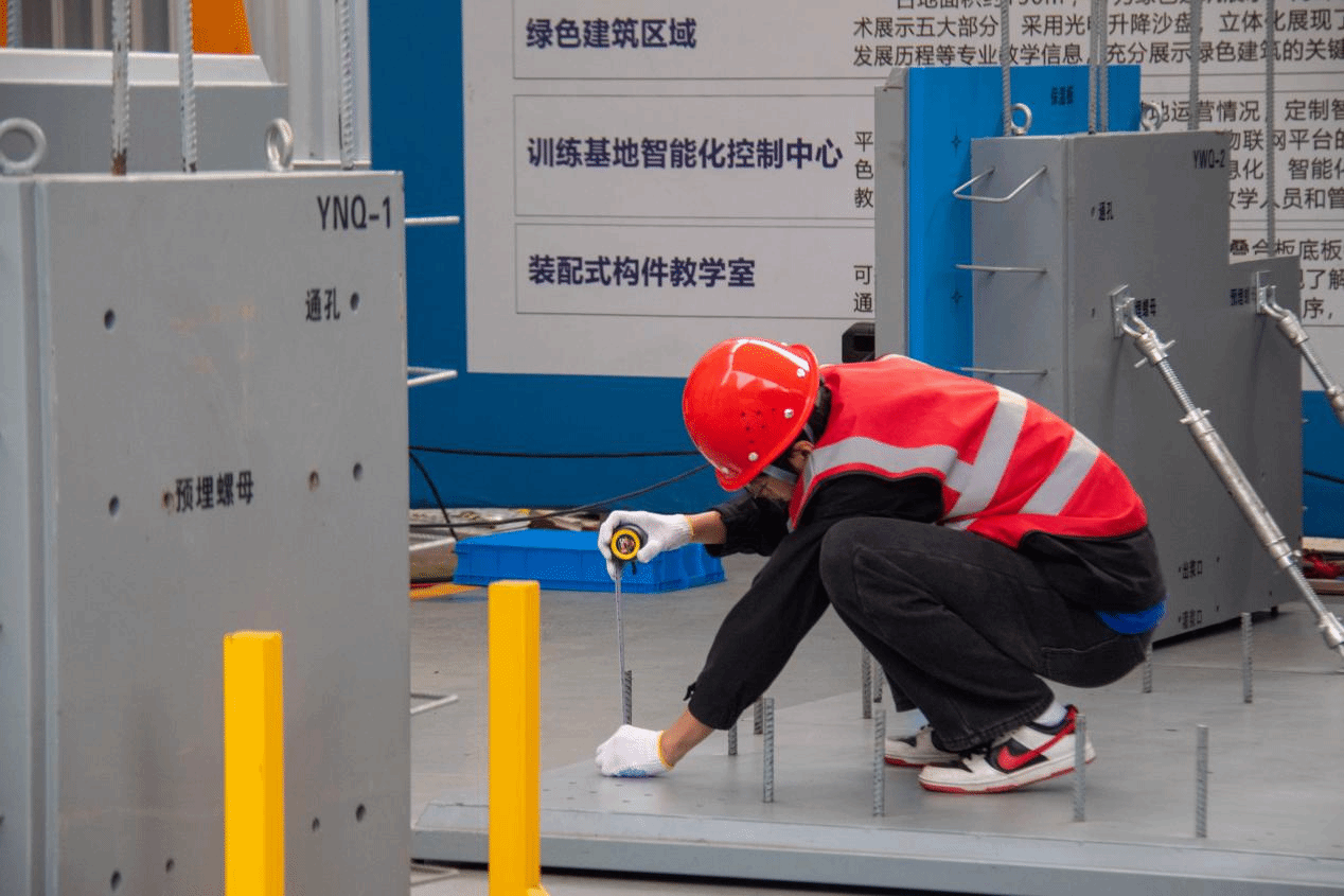比賽期間,選手們利用BIM技術設計整座建筑的構件圖紙,再通過仿真虛擬技術,還原在工廠生產構件的過程,并完成運用吊車進行真實構件現場安裝及安裝質量檢驗等工作任務,展示了扎實的專業技能和過硬的綜合素質。