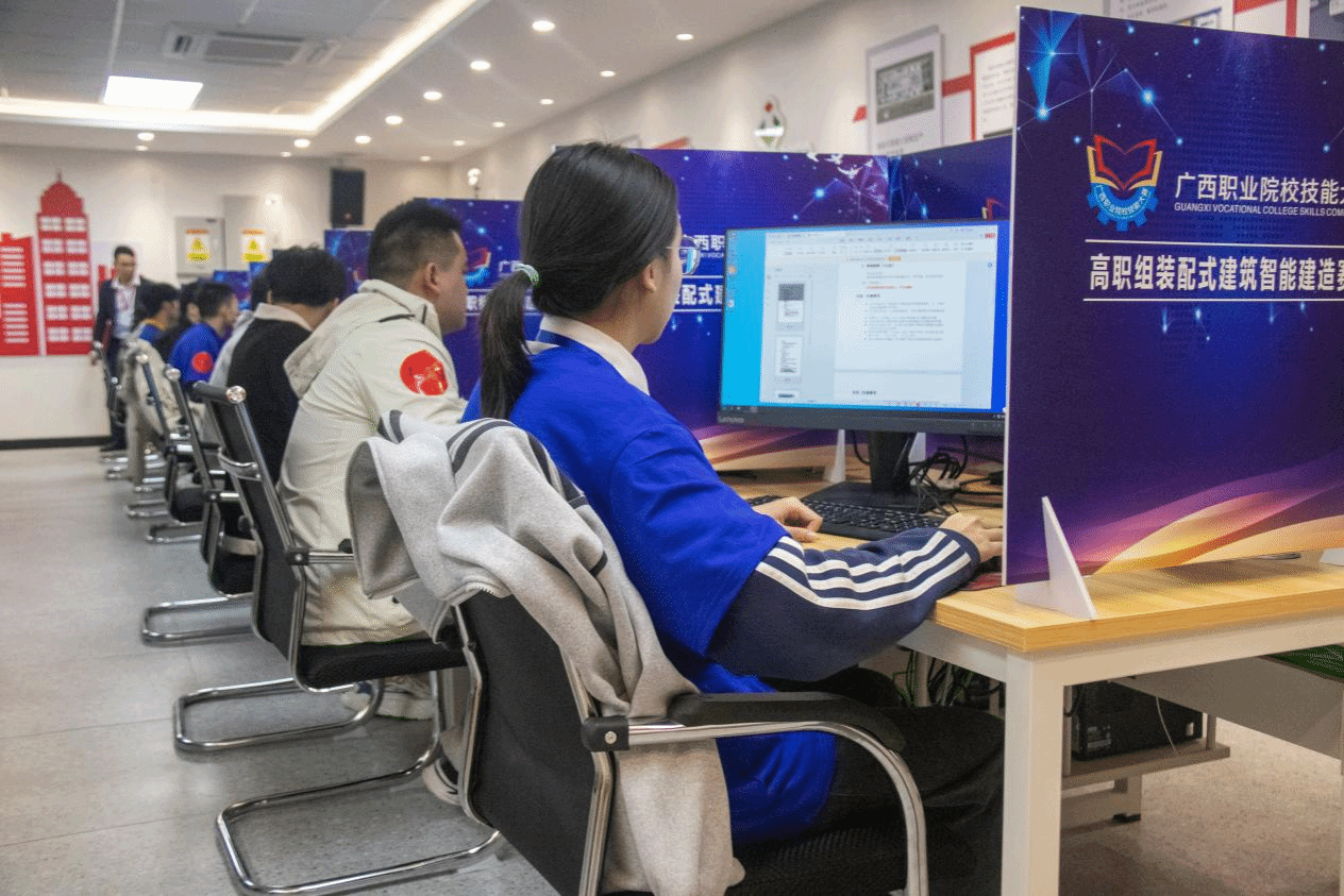 “裝配式建筑智能建造”今年首次成為廣西職業院校技能大賽賽項。該賽項以建筑產業轉型升級為抓手,以服務數字建造強國為核心,全面對接建筑產業數字化、工業化、智能化發展新趨勢,適應裝配式建筑施工與管理等崗位群的新要求。賽項要求參賽選手在規定時間內,獨立與合作完成包括信息化建模與方案編制、施工圖識讀與施工模擬、技能操作三個競賽模塊的任務。比賽重點關注參賽選手的專業技術技能、創新能力、職業素養、團隊協作等能力,助力培養和選拔高水平技術技能人才。