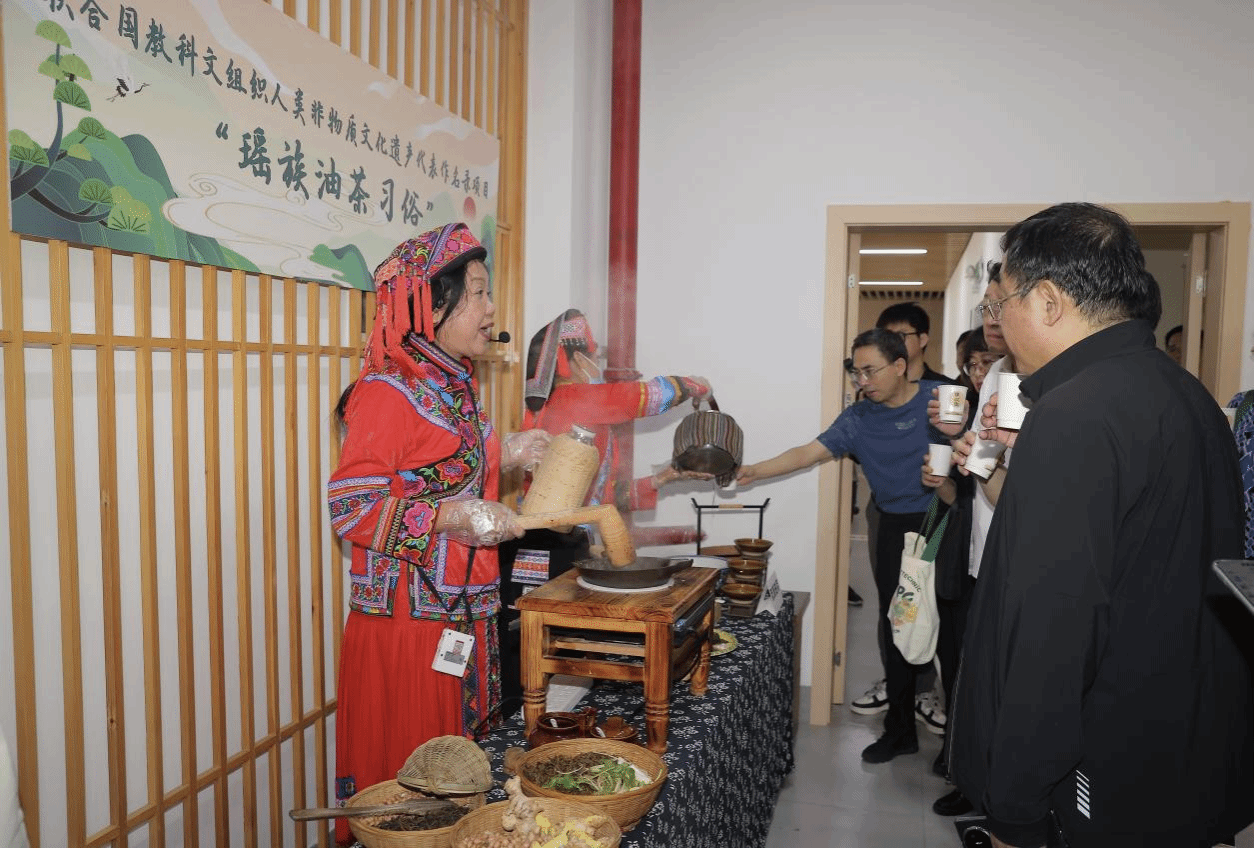 嘉賓們體驗廣西非物質文化遺產瑤族油茶