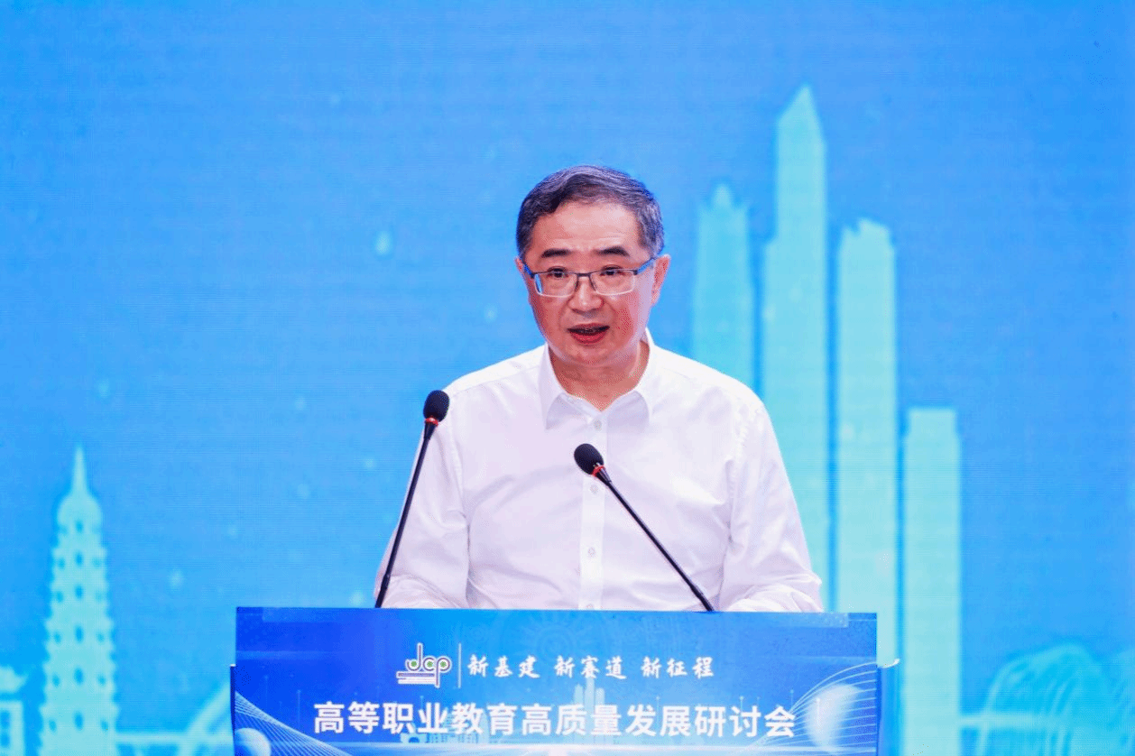 林宇主任在主旨報告中指出,職業教育當前的重點工作就是要落實好“一體兩翼五重點”戰略部署,通過“一體”以省部協商的方式充分發揮省級政府在發展職業教育中的積極性和主動性;通過“兩翼”在“條”上發揮龍頭企業、鏈長企業對上下游產業的動員力量,在“塊”上發揮各級政府的行政力量,促進校企合作、產教融合。“五重點”是直接關系到人才培養質量的關鍵要素,要以專業建設為載體加強“五金建設”。他認為,高質量的職業教育至少應具有7個表征,即:先進的理念、清晰的定位、良好的條件、適合的培養、強大的功能、公認的水平、國際的影響。他強調,高職教育的高質量發展,以辦學定位為指引,對接產業、融入地方;以專業建設為載體,夯實基礎、提升水平;以國家項目為抓手,凝聚共識、樹立示范;以數字技術為支撐,搶抓機遇、推進改革。