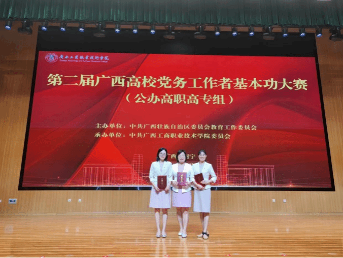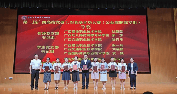 多年來,學校黨委始終堅持以高質量黨建引領高質量發展,高度重視基層黨務工作者隊伍建設。繼在上屆廣西高校黨務工作者基本功大賽公辦高職高專組比賽中獲得兩個一等獎、一個二等獎的好成績之后,我校再接再厲,在本次大賽中獲得三個一等獎的優異成績,充分展示了學校黨委深入貫徹落實新時代黨的建設總要求和新時代黨的組織路線,持續推進基層黨務工作者隊伍建設的豐碩成果。下一步,學校黨委將繼續以習近平新時代中國特色社會主義思想為指導,深入貫徹黨的二十大和二十屆三中全會精神,奮楫爭先,持續打造一支高水平黨務工作者隊伍,推動基層黨組織全面進步全面過硬,為學校高質量發展提供堅實的政治和組織保障。