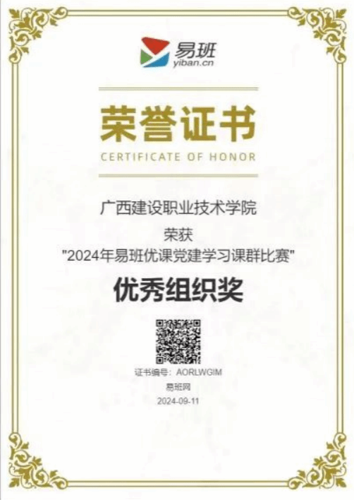 廣西建院9月22日訊(黨委學生工作部 劉晗蓓)近日,教育部易班發展中心公布了2024年易班優課“新生入學教育活動”、2024年易班優課“黨建學習課群比賽”兩項大賽評比結果,我校在兩項大賽中榮獲“優秀組織獎”。這是我校易班今年繼獲2024年第一屆易班優課“求職輔導課程學習大賽”、第一屆易班優課“美食圖文課大賽”兩項大賽的“優秀組織獎”后,再獲全國易班優課榮譽。