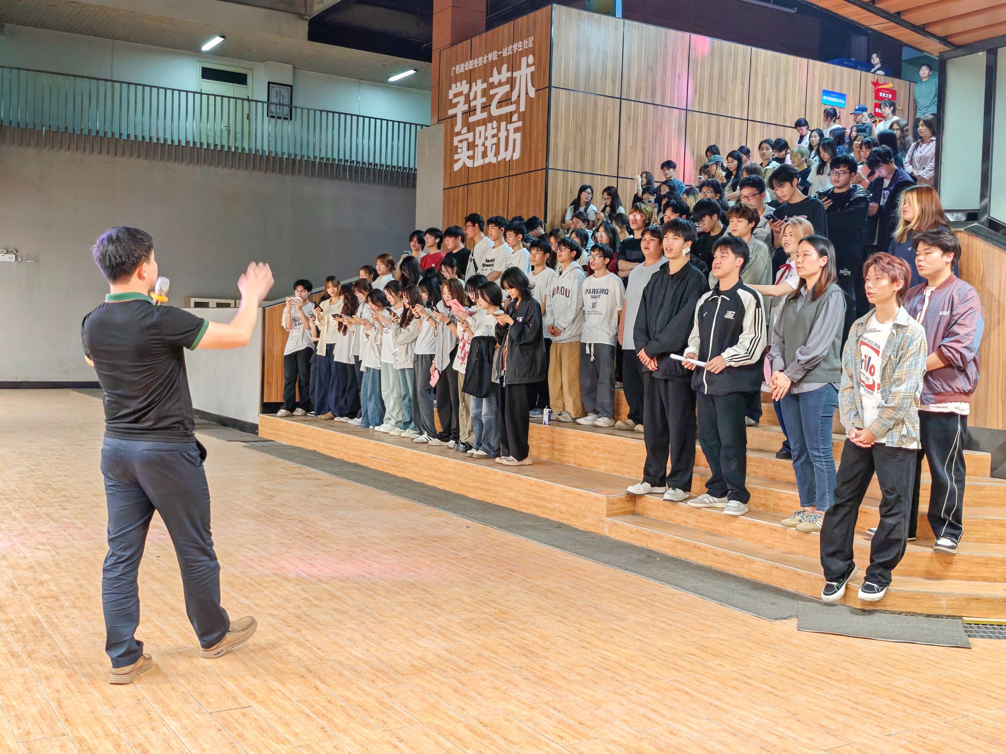 廣西建院3月27日訊(藝術設計學院 文/謝安妮 黃皓斌 圖/黃海文)3月24日晚,一場別開生面的學雷鋒活動在大學生藝術實踐坊進行,藝術設計學院團總支組織青年學子以“傳承雷鋒精神 爭做時代新人”為主題,用“學習、分享、傳唱、踐行”的形式,通過沉浸式學習、故事分享、歌曲重溫、志愿服務,讓雷鋒精神在藝術實踐中煥發新活力。