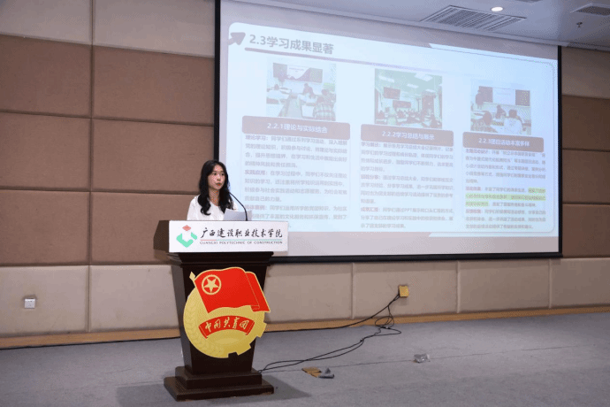 “紅旗團支部”建工2401班團支部代表周福麗同學在展示評比活動現場