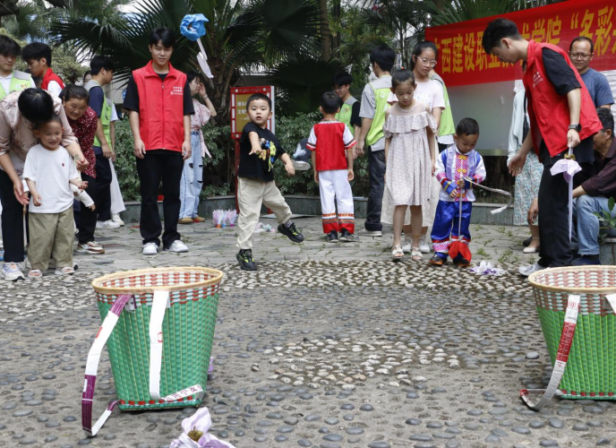 室外的“鄰里運(yùn)動(dòng)會(huì)”同樣熱鬧非凡。背簍繡球、踢毽子挑戰(zhàn)、投壺等民族傳統(tǒng)體育項(xiàng)目吸引了眾多居民參與。一位社區(qū)居民感慨道:“這些活動(dòng)既有趣又有意義,不僅讓我們感受到不同民族文化的魅力,也讓鄰里關(guān)系更加緊密!”