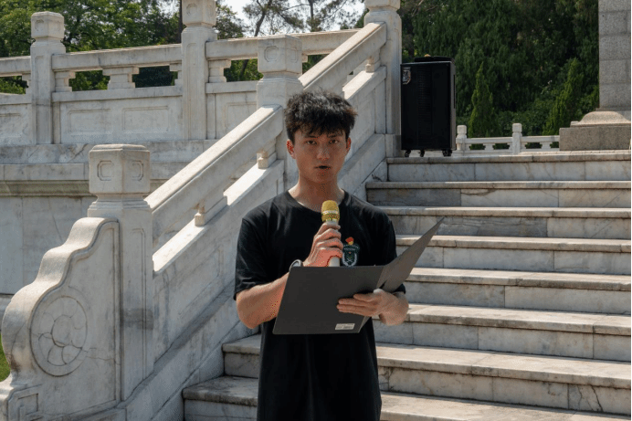 活動當天上午,祭掃活動在莊嚴肅穆的氣氛中拉開帷幕。全體團員青年整齊列隊,面向革命烈士紀念碑肅立,齊聲高唱國歌。激昂的旋律回蕩在陵園上空,將青年們的思緒帶回到那段烽火連天的歲月。學生代表潘湘湘以《南寧故事里的紅色記憶》為題,講述了革命先烈在八桂大地浴血奮戰的英雄事跡,讓現場師生深切感受到南寧作為紅色熱土的厚重歷史。