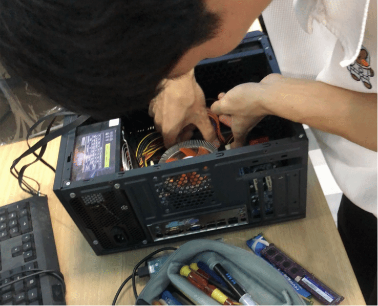 專業服務,溫情互動。活動現場,志愿者們俯身清理電腦灰塵、檢查硬件的身影成為最溫情的畫面。一臺臺電腦在技術組成員的手中“重獲新生”。“記得保管好螺絲!”志愿者不時提醒道。而在“軟件安裝區”,志愿者們不僅幫同學們配置編程環境,還耐心講解操作技巧,讓不少同學笑稱“賺到了一節免費實訓課”。值得一提的是,本次活動還創新推出了遠程服務。當志愿活動信息發布到工作室交流群后,一位不在校的同學留言:“我想安裝軟件,但人不在學校,能幫忙嗎?”志愿者當即表示可以遠程協助,最終成功解決問題。