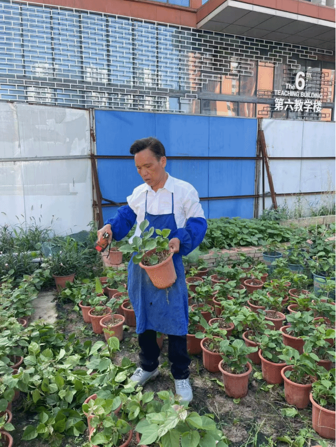 校園每一寸土地上,都留下了袁師傅的足跡。清晨的露水沾濕他的衣角,正午的驕陽(yáng)曬黑他的臉龐,暮色中的身影仍在悉心修剪枝葉。從青蔥少年到鬢染霜雪,他將自己的青春與熱忱,都傾注到了這片校園綠茵中,為全校師生打造出四季如春的優(yōu)美校園環(huán)境。