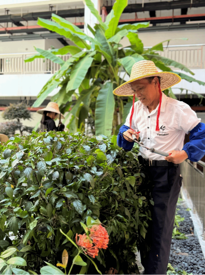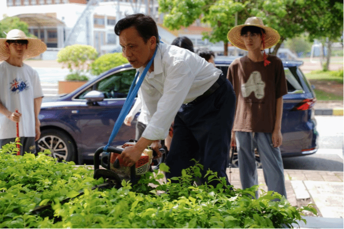廣西建院5月27日訊(后勤管理處 唐尚芳)自1993年到校工作以來,袁江春師傅始終與“校園環(huán)境”打著交道,以匠心守護(hù)著校園里的一草一木,用歲月勾勒出四季芳華。從秀靈路校區(qū)到相思湖校區(qū),澆灌、施肥、修剪、除病蟲害,每一項(xiàng)工作都做得細(xì)致入微,將對(duì)校園的熱愛化作點(diǎn)滴行動(dòng)。