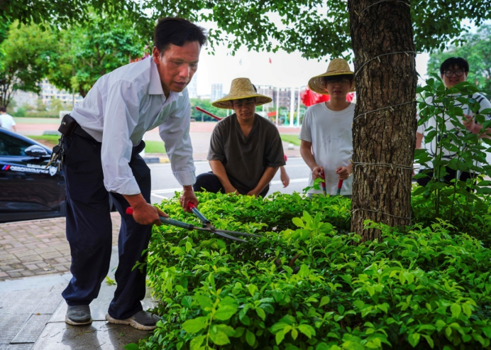 除了日常綠化養(yǎng)護(hù)等工作外,袁師傅還承擔(dān)起勞動(dòng)教育的重任,主要負(fù)責(zé)勞動(dòng)周課程的實(shí)地教學(xué),帶領(lǐng)學(xué)生參與綠化勞動(dòng)實(shí)踐,手把手傳授修剪、種植、除草等技巧,用生動(dòng)的現(xiàn)場(chǎng)教學(xué),激發(fā)同學(xué)們對(duì)勞動(dòng)的熱愛。學(xué)生們?cè)诜痢⒉シN、養(yǎng)護(hù)的過程中,練就吃苦耐勞的堅(jiān)韌品格,同時(shí)也增強(qiáng)了同學(xué)們的責(zé)任感與團(tuán)隊(duì)協(xié)作能力。