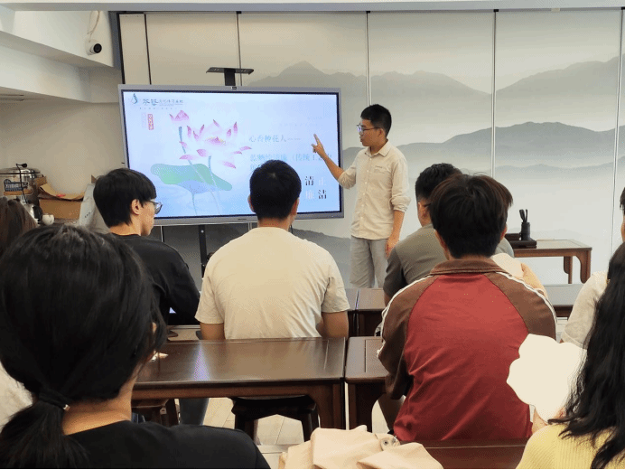 學(xué)院依托“心香種花人”一站式學(xué)生社區(qū)品牌,創(chuàng)新開展“荷風(fēng)廉韻,藍(lán)曬傳情”廉潔文化體驗(yàn)課。活動中,輔導(dǎo)員黃鐵華將傳統(tǒng)藍(lán)曬工藝與廉潔文化巧妙融合,指導(dǎo)同學(xué)們在紙扇上創(chuàng)作以“蓮”為主題的廉潔作品。通過調(diào)色、構(gòu)圖、曬制等環(huán)節(jié),同學(xué)們體驗(yàn)了傳統(tǒng)工藝的獨(dú)特魅力,更深刻領(lǐng)悟到“出淤泥而不染”的廉潔真諦。這種寓教于藝的沉浸式體驗(yàn),讓廉潔教育在藝術(shù)創(chuàng)作中自然浸潤心田,實(shí)現(xiàn)了價(jià)值觀的無聲滋養(yǎng)。