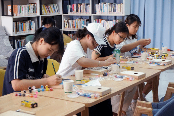 同學們通過重復的精細動作,體驗沉浸式地舒緩壓力。同時將平安符中的祝福語轉化為積極心理暗示,內化為自我激勵,達到壓力釋放與內心安定的效果。