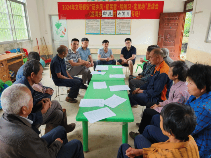 張偉(前排右一)同駐村隊員、村“兩委”干部參加群樂村“話鄉風·聚民意·除陋習·定民約”懇談會