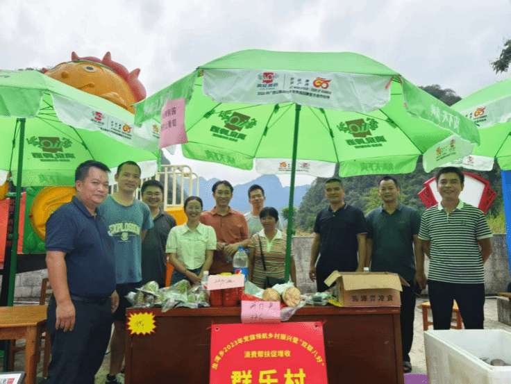 張偉(左三)同村“兩委”干部及駐村工作隊員參加龍灣鄉2023年黨旗領航鄉村振興暨“雙聯八號”消費幫扶活動