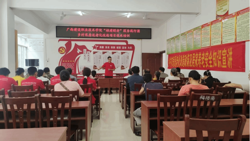 實踐團隊深化“政-校”協同,與自成村、德雅村等結對共建適老化改造“大學生社會實踐服務基地”5個。在廣西高校“雙帶頭人”教師黨支部書記“強國行”專項行動團隊3名行業專家的指導下,實踐團隊學生聚焦“智志雙扶”為120名公益性崗位、村干部開展了10場技能培訓,用專業所長為鄉村工匠技能技術教育添磚加瓦,推動“互助式”養老鄉村社區建設,為鄉村振興貢獻了職教智慧與力量。
