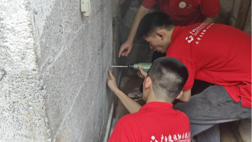 實踐團隊在進行衛生間老人安全扶手的安裝