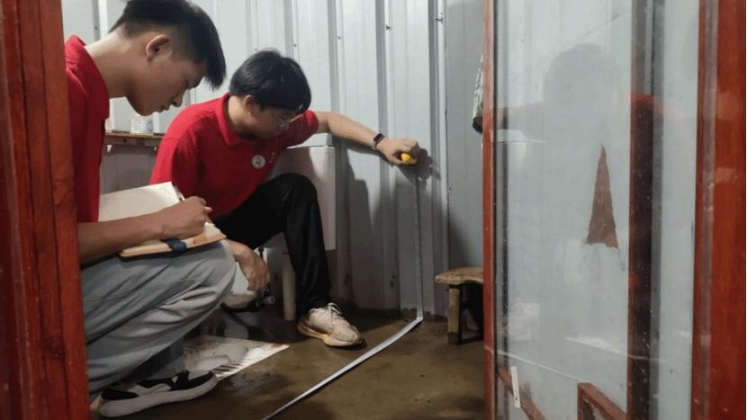 7天時間里,7名實踐隊學生在2名帶隊指導老師的帶領下手持專業設備與老年人居家安全排查表,穿梭于百戶高齡老人家中。通過發放300余份適老化改造調查問卷了解相關需求,并實地勘察100戶老年人家庭衛生間、臥室等區域安全隱患,提出適老化改造“一戶一策”方案。