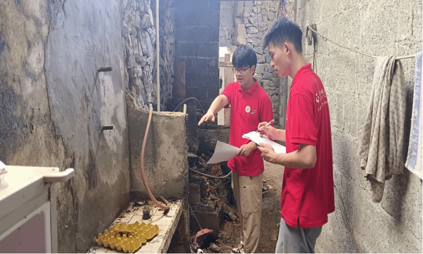 實踐團隊在實地勘察廚房區域安全隱患