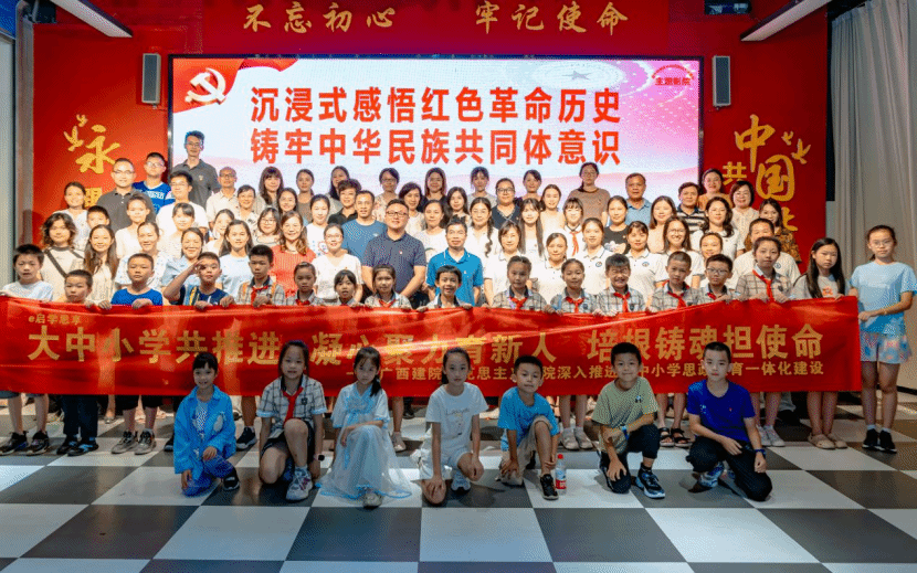 為弘揚紅色文化,傳承革命精神,凝聚奮進力量,7月18日下午,我校馬克思主義學院聯合廣西物資學校、廣西商貿技師學院以及南寧市西莊路小學、西寧路小學的師生代表,在南寧市鑄牢中華民族共同體意識主題影院開展“沉浸紅色記憶,凝聚奮進力量”主題黨日活動。通過觀影、沉浸式課堂、紅歌傳唱和重溫入黨誓詞等形式,師生們共同接受了一次深刻的紅色精神洗禮。