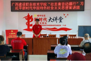 7月12日至18日,廣西建設(shè)職業(yè)技術(shù)學(xué)院“壯美青音邊疆行”習(xí)近平新時(shí)代中國特色社會主義思想雙語宣講團(tuán)先后深入靖西市和南寧市多個(gè)社區(qū)村屯,開展了為期一周的暑期“三下鄉(xiāng)”社會實(shí)踐活動(dòng),通過創(chuàng)新雙語宣講形式,推動(dòng)黨的創(chuàng)新理論在邊疆民族地區(qū)落地生根。